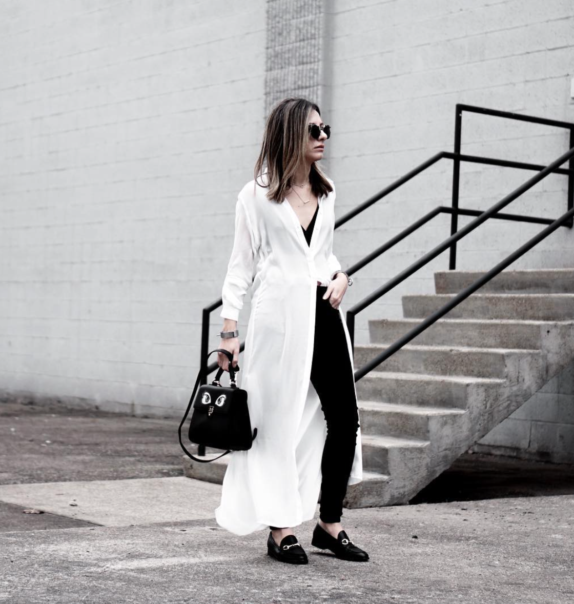 Sirin is seen here casually rocking our ‘Hand Painted Oxford Tote’ styled with a classic white maxi shirt, black skinny jeans, gold-buckled black loafers and finished off with a pair of stylish sunglasses.